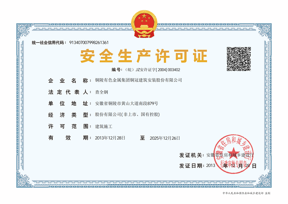有色金屬工業(yè)建設工程質(zhì)量檢測機構資質(zhì)證書